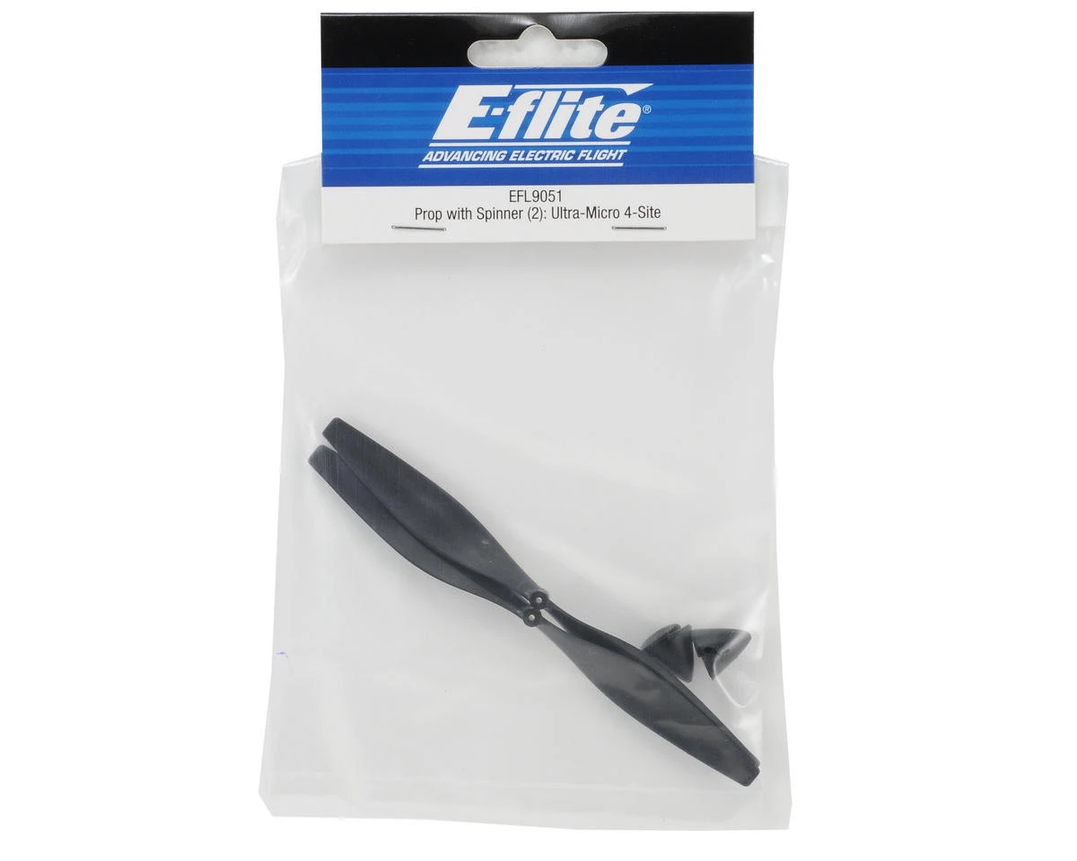This is a set of two E-Flite Propellers with included Spinners, and are intended for use with the E-Flite UMX 4-Site, Ultra Micro Sukhoi SU-26xp and Ultra Micro Pole Cat airplanes as well as the HobbyZone Champ.
