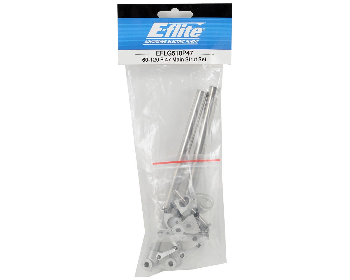 This is an optional E-flite 60-120 P-47D-1 Main Strut Set and is intended for use with the Hangar 9 P-47D-1 Thunderbolt 60 ARF. This strut set is required to use the 60-120 Size 85° Strut Ready Main Electric Retract System (EFLG510). Package includes all hardware and components needed for installation.