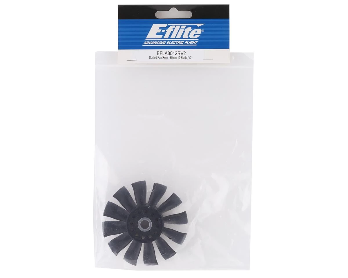 E-flite 80mm V2 Ducted Fan Rotor. Package includes one replacement 12 blade fan rotor intended for the E-flite F-16 Falcon, F-18 Hornet and the Blue Angels F-18.