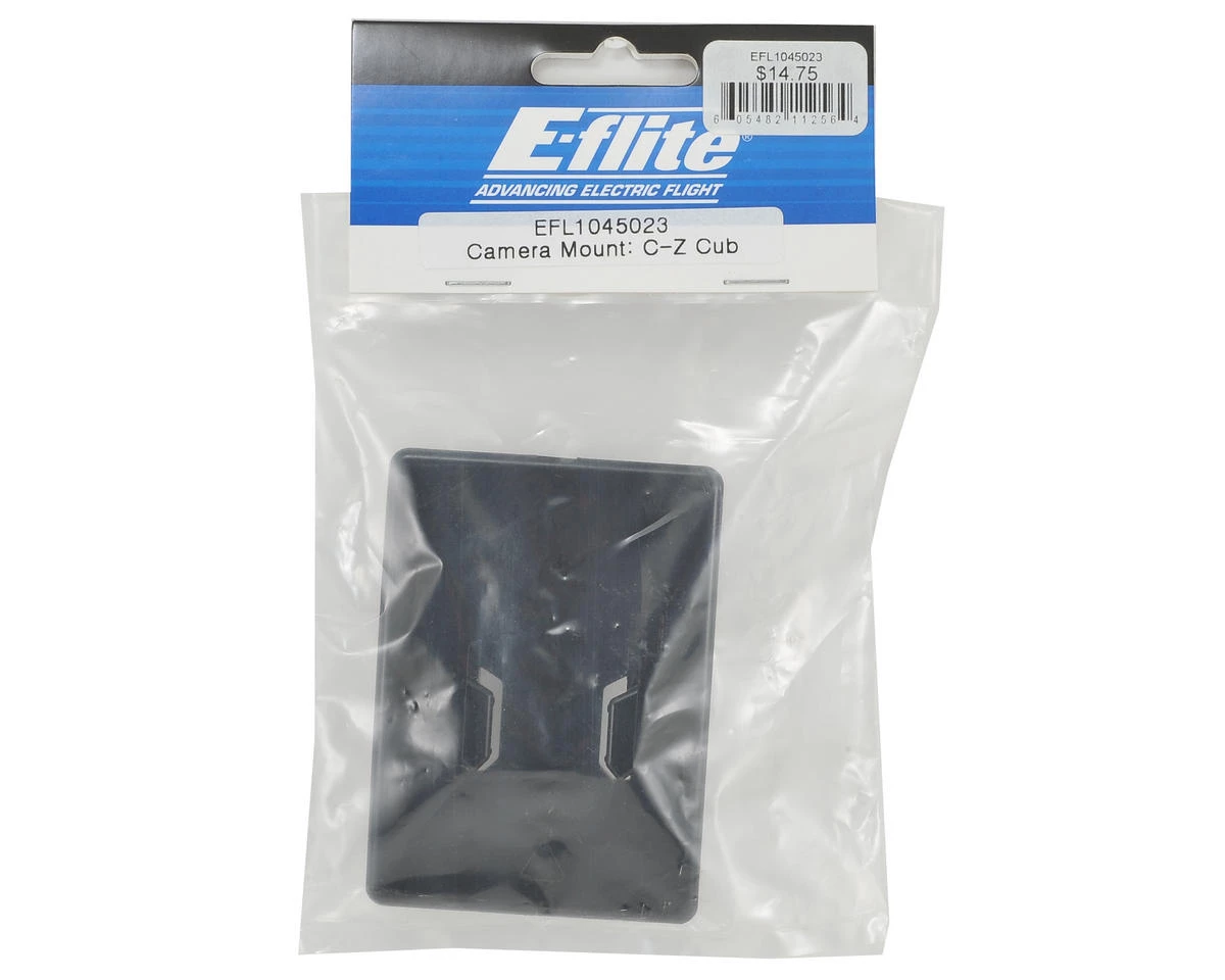 E-flite Carbon-Z Cub Camera Mount. This optional camera mount allows you to mount a GoPro camera to your Carbon-Z Cub and get aerial footage of you flight. It mounts between the wings on the top of the cab using double side tape (not included) and has a clip that fits the GoPro quick release buckle.