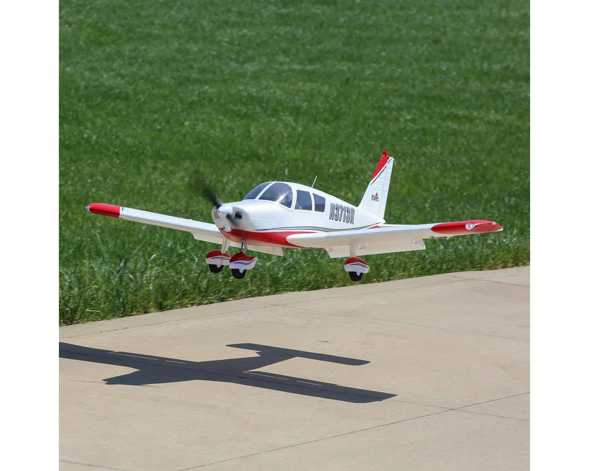 Plug-in wing panels are used with a convenient hands-free servo connection system and include operational slotted flaps for shorter take offs and landings. No glue is required for assembly of the lightweight, carbon-fiber reinforced EPO airframe. An extremely large top hatch offers easy access to the electronics and the battery mounting area with plenty of space to fit a 3S or 4S 2200–3200mAh battery, while the high-power brushless motor and 50-amp ESC deliver better-than-scale power. It all adds up to a scale marvel that delivers incredible handling and fantastic flight performance for shooting smooth touch and goes, rock-solid low and high speed cruising, and even for performing aerobatics—all in a single model that you’ll be proud to own.