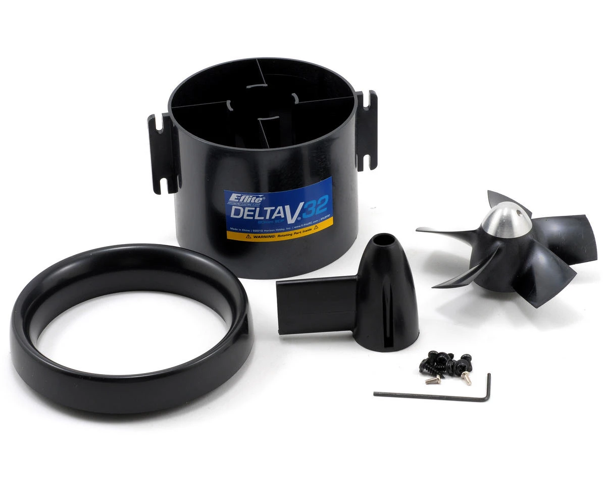 This is the E-flite Delta-V (R) 32 80mm EDF Unit. E-flite’s Delta-V 32 80mm EDF electric ducted fan unit is an ideal choice for products such as E-flite’s Habu 32 DF and other similar sized ducted fan airplanes that require 80mm diameter fan units. The BL32 Ducted Fan Brushless Motor, 2150Kv (EFLM3032DFA) is purpose-built for this Delta-V 32 80mm EDF and both products will provide great performance.