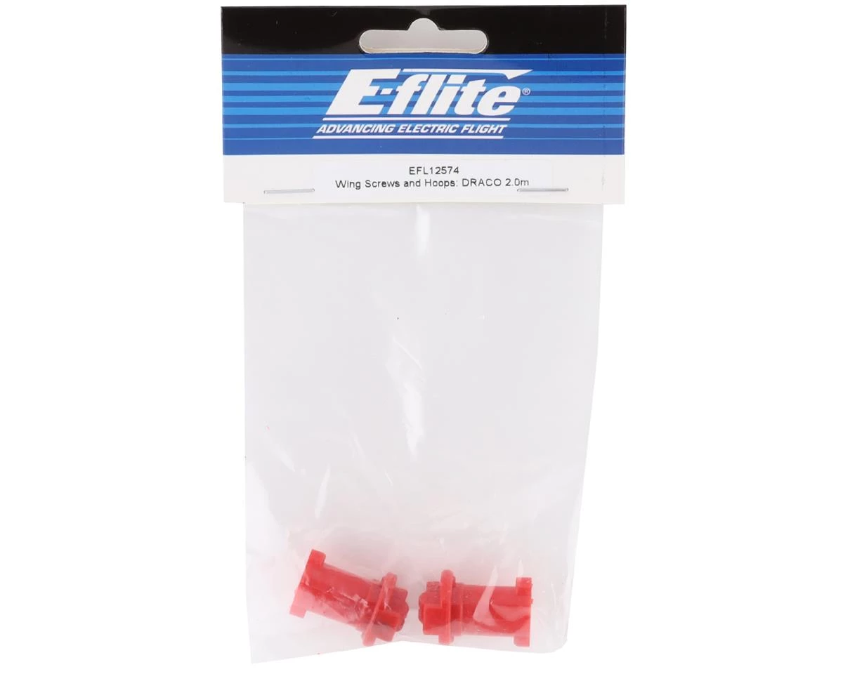 E-flite DRACO 2.0m Wing Screws & Hoops. Package includes two replacement wing screws with hoops.