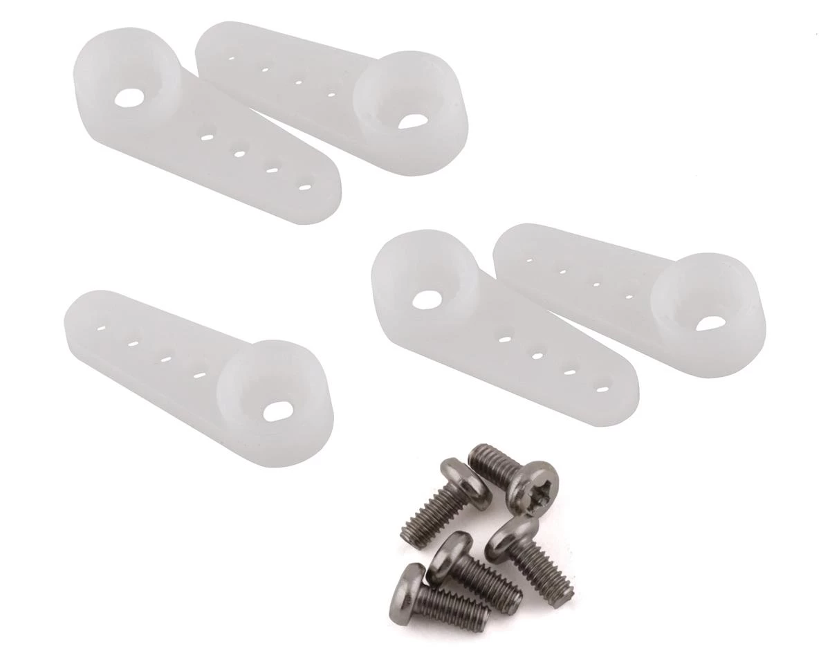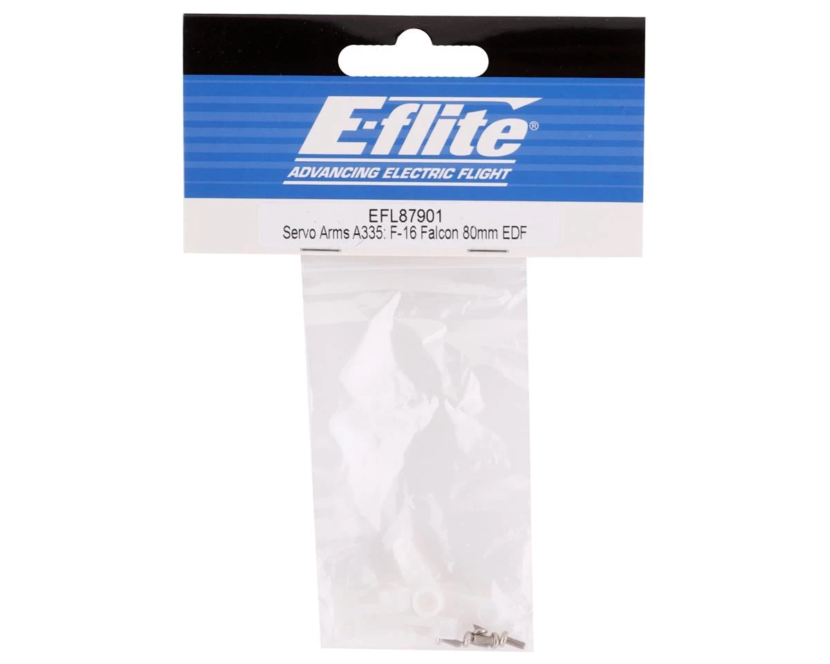 E-flite F-16 80mm Falcon Servo Arms. These replacement servo horns are intended for the Spektrum A335 servos (SPMSA335) found in the E-Flite F-16 80mm. Package includes five servo horns and five screws.