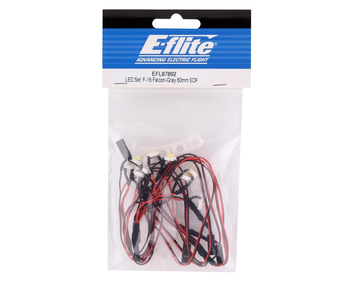E-flite F-16 Falcon LED Set. This replacement LED set is intended for the E-flite F-16 Falcon 80mm. Package includes one LED light set.
