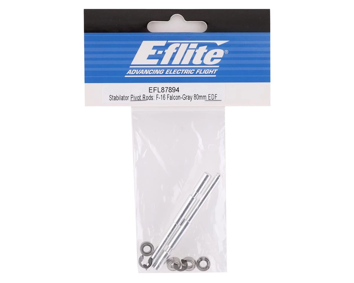 E-flite F-16 Falcon Stabilator Pivot Rods. These are replacement stabilator pivot rods intended for the E-flite f-16 Falcon. A stabilator, sometimes called an all-moving tail, is a type of elevator where the entire surface moves to pitch the aircraft up or down. Package includes two stabilator pivots, four bearings and two retaining clips.