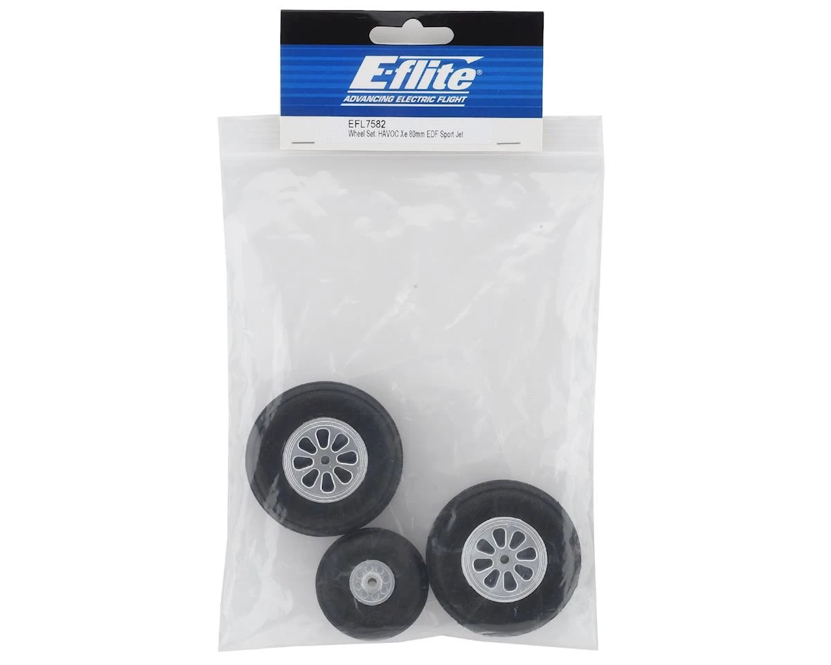 This is a replacement E-Flite HAVOC Xe Wheel Set, intended for use with the HAVOC Xe Electric Ducted Fan Jet Airplane. This set includes two rear wheels and one front wheel.