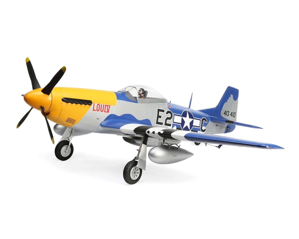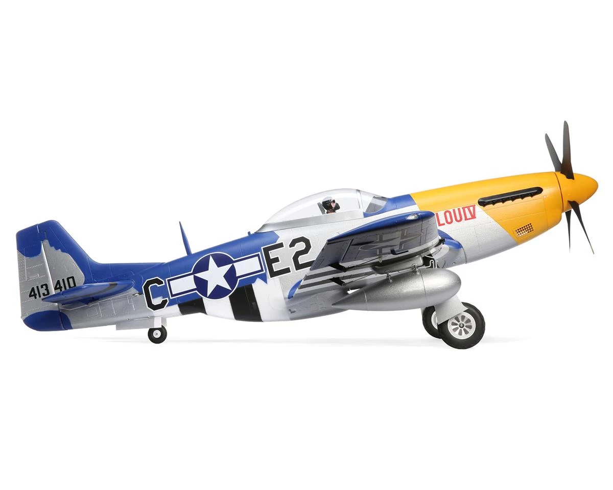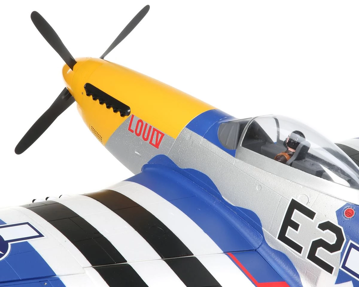 The E-Flite P-51D Mustang 1.5m BNF Basic with Smart Brushless ESC is a smarter, more detailed and better performing version of the already popular P-51D Mustang 1.5m. This model has the accuracy and attention to detail you’ve come to expect from E-Flite’s models of the legendary fighter, along with extra scale details such as molded in panel lines and hatches, guns and removable drop tanks, LED navigation lights, sequenced main and tailwheel gear doors and flaps, plus a striking factory-applied “Lou IV” finish.