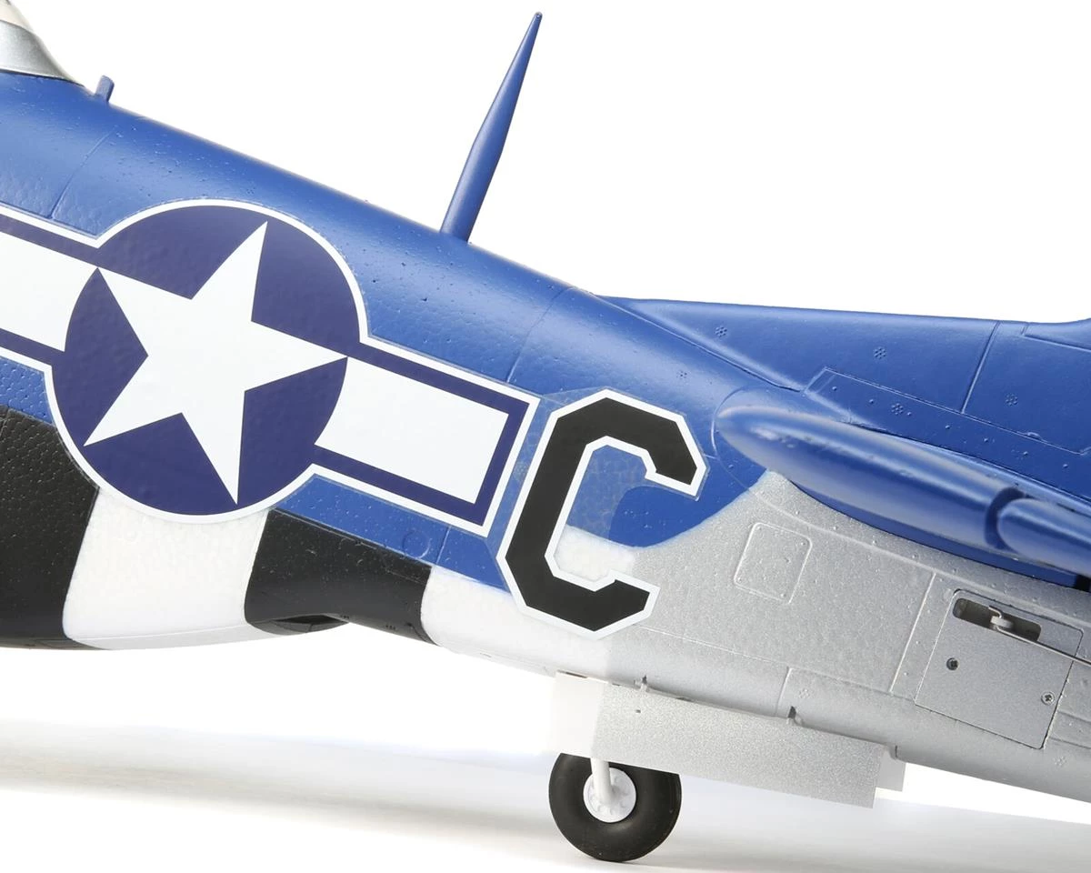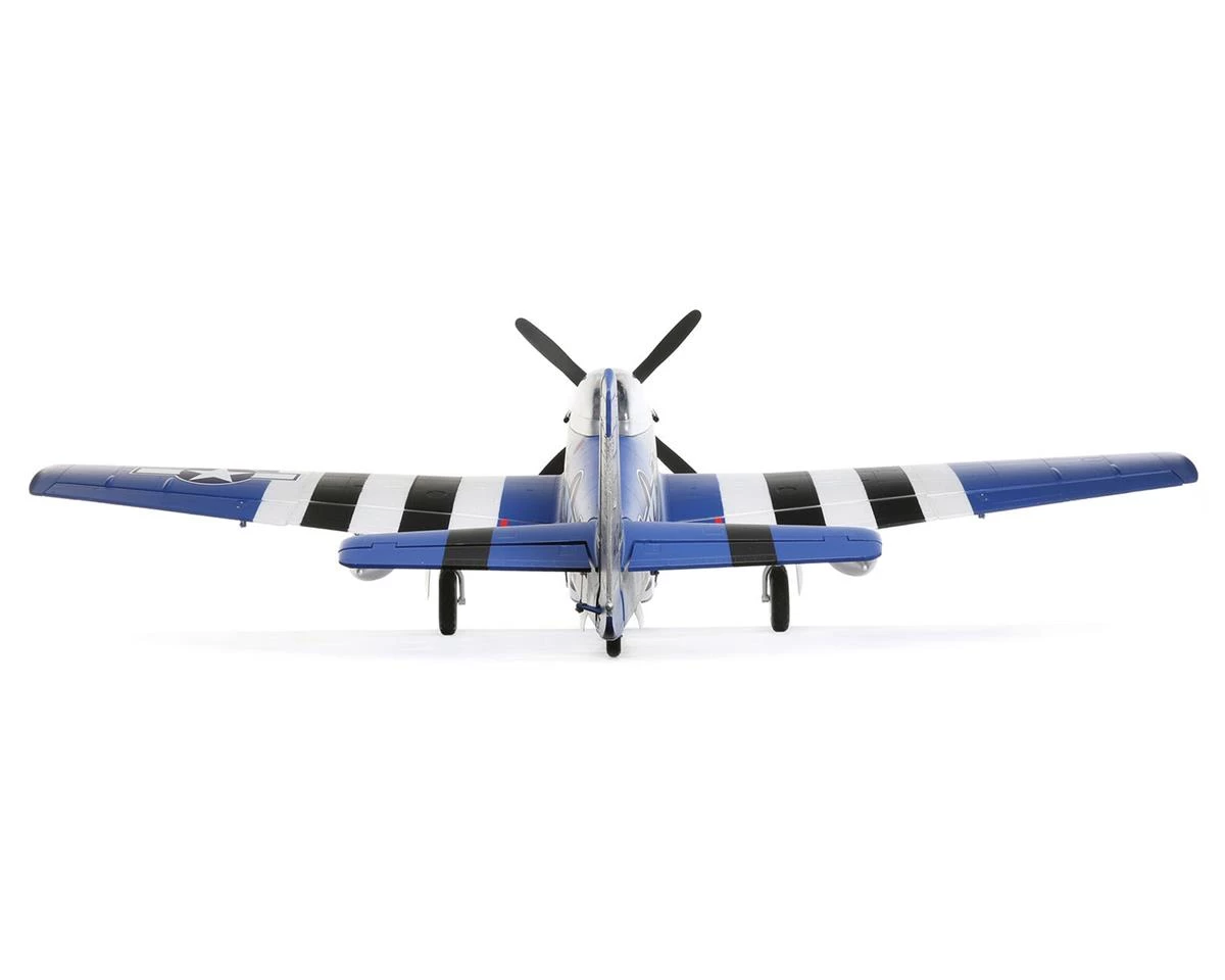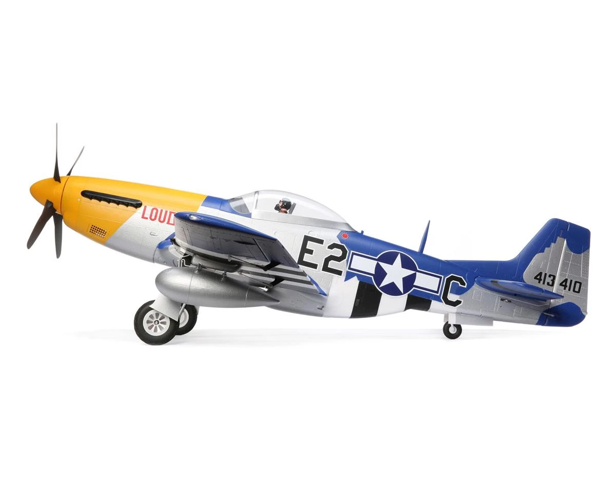 The E-Flite P-51D Mustang 1.5m BNF Basic with Smart Brushless ESC is a smarter, more detailed and better performing version of the already popular P-51D Mustang 1.5m. This model has the accuracy and attention to detail you’ve come to expect from E-Flite’s models of the legendary fighter, along with extra scale details such as molded in panel lines and hatches, guns and removable drop tanks, LED navigation lights, sequenced main and tailwheel gear doors and flaps, plus a striking factory-applied “Lou IV” finish.