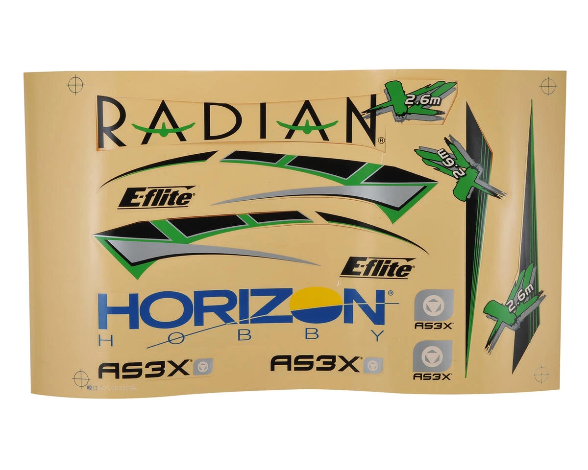 This is a replacement E-flite Decal Sheet for the Radian XL.