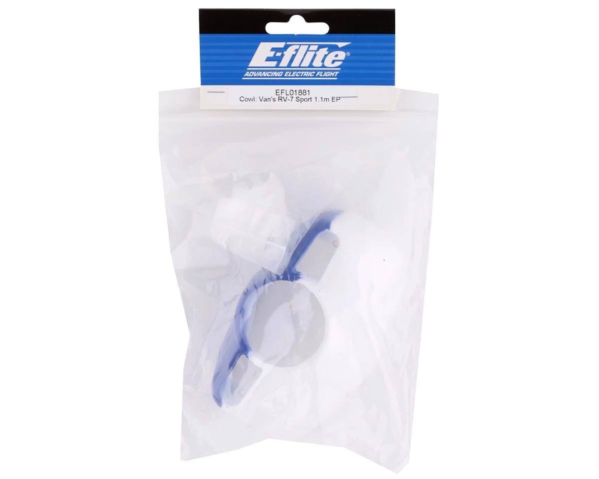 E-flite RV-7 1.1m Cowl. This replacement cowl is intended for the E-flite RV-7 1.1m. Package includes one cowl and mounting hardware.