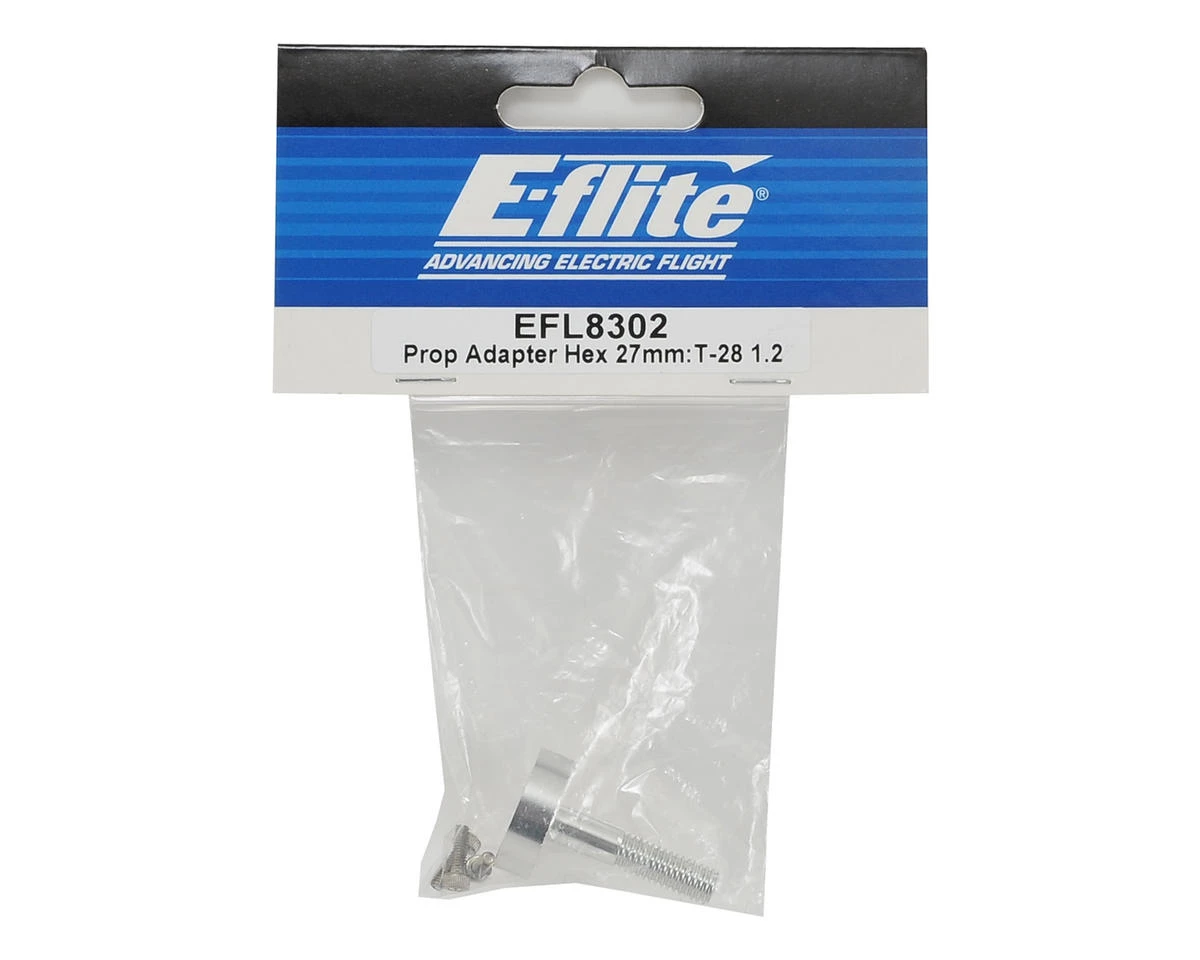Replacement E-flite T-28 Trojan 1.2 27mm Hex Prop Adapter. Package includes prop adapter and hardware.