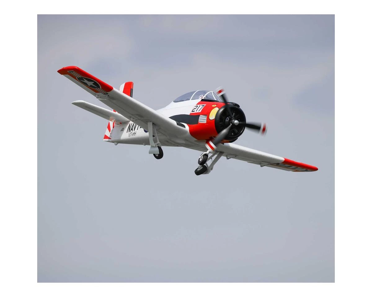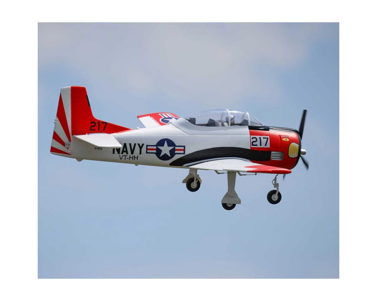 The E-flite T-28 Trojan 1.2m Plug-N-Play Electric Airplane w/Smart ESC has been designed to capture the looks of the full-size U.S. Navy trainer. Not just a scale flyer, this plane is designed for powerful sport flying while still being the easiest to fly “full-house” T-28 model yet.