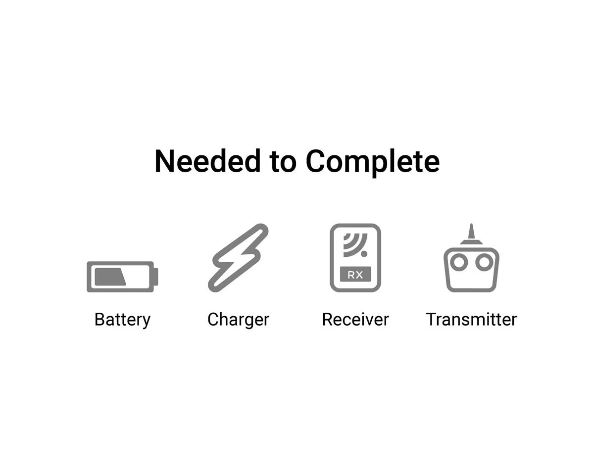 - (1) 3S 11.1V or 4S 14.8V 2200–3200mAh LiPo with EC3 or IC3 Connector