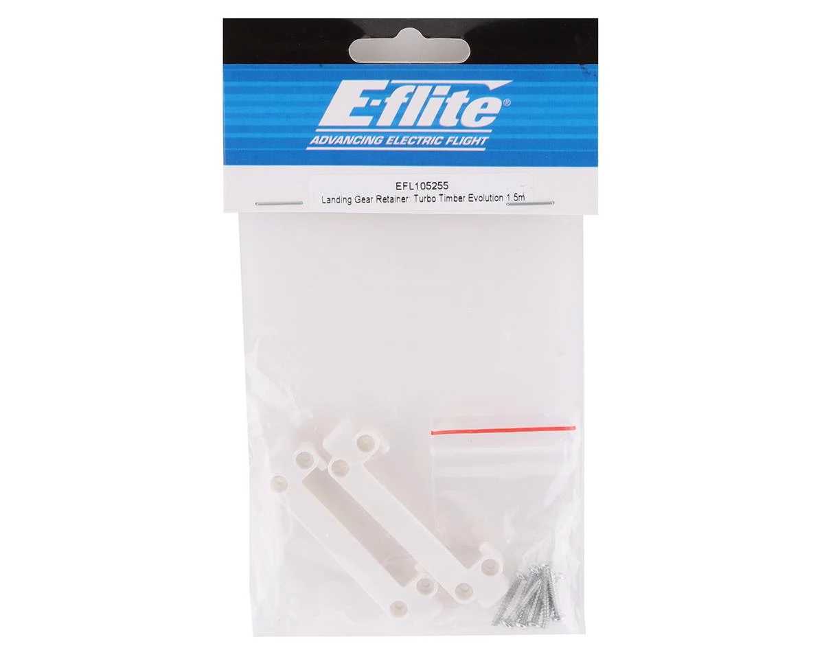 E-flite Timber Evolution 1.5m Landing Gear Retainer. These replacement retainers is intended for the E-flite Timber Evolution 1.5m. Package includes two landing gear retainers and hardware.