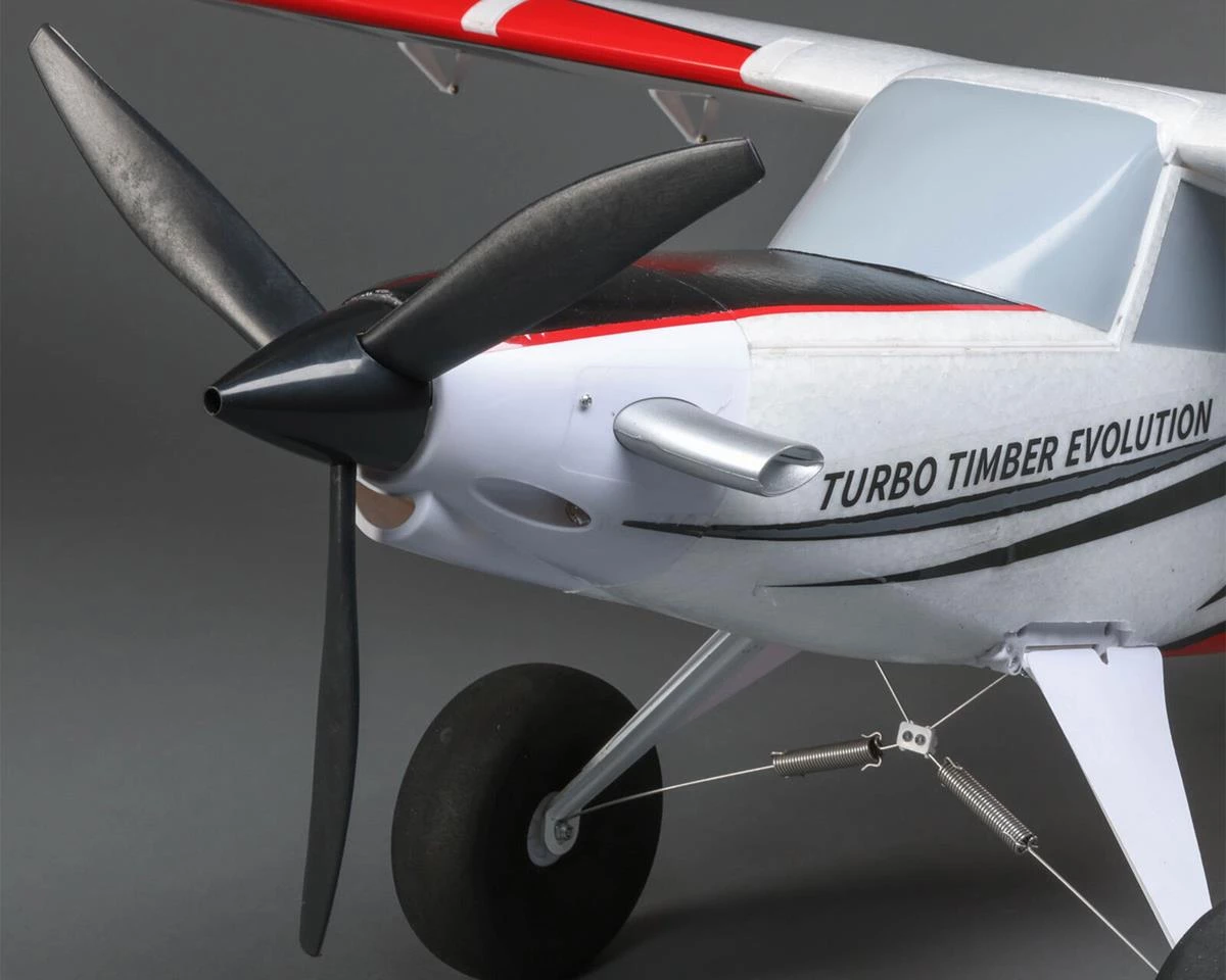 The E-flite Turbo Timber Evolution 1.5m Bind-N-Fly Basic Electric Airplane is a Short Take Off and Landing (STOL) capable airplane with forgiving flight characteristics, nimble sport performance, with the ability to takeoff and land almost anywhere. The Turbo Timber Evolution 1.5m is a great “next step up” from a trainer, a perfect first STOL-capable aircraft, or as an all-around, fun-to-fly sport models for a wide range of pilots. The Turbo Timber Evolution 1.5m includes updates upgrades that deliver more durability, convenience, and capabilities than its predecessor model — with an aggressive, modern look.