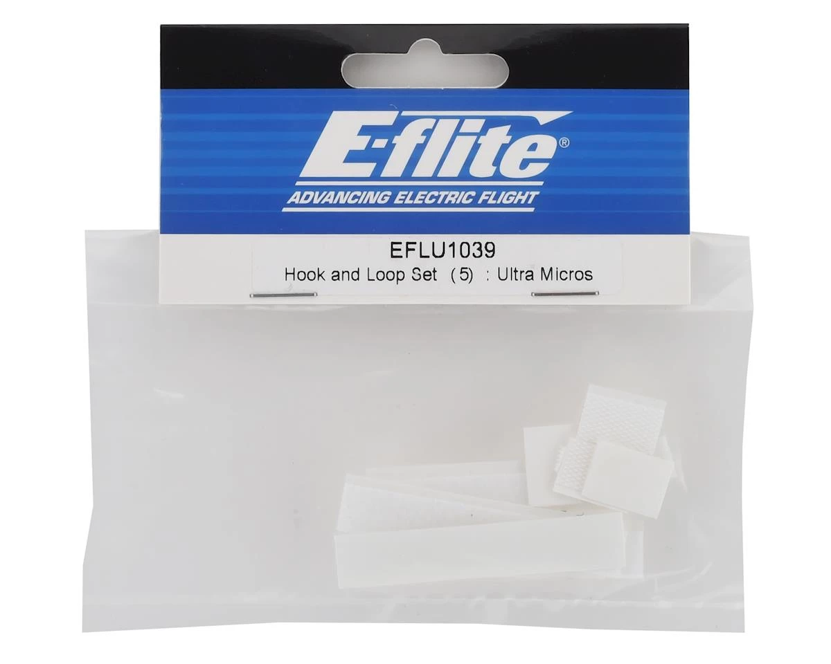 This is a pack of E-Flite Ultra Micro Hook & Loop Tape Set. This pack contains 5 pieces of hook and loop tape.