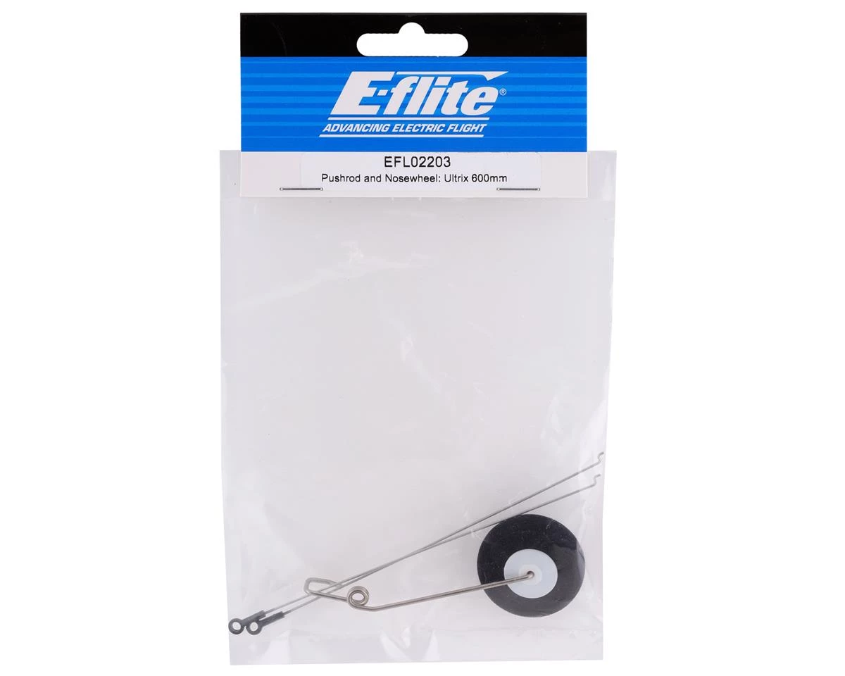 E-flite Ultrix 600mm Pushrods and Nosewheel. The replacement nose wheel and pushrods are intended for the E-flite Ultrix 600mm. Package includes two pushrods and one nosewheel.