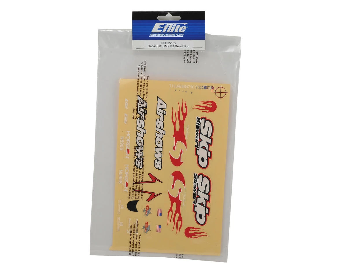This is a replacement E-flite UMX P3 Revolution Decal Set.