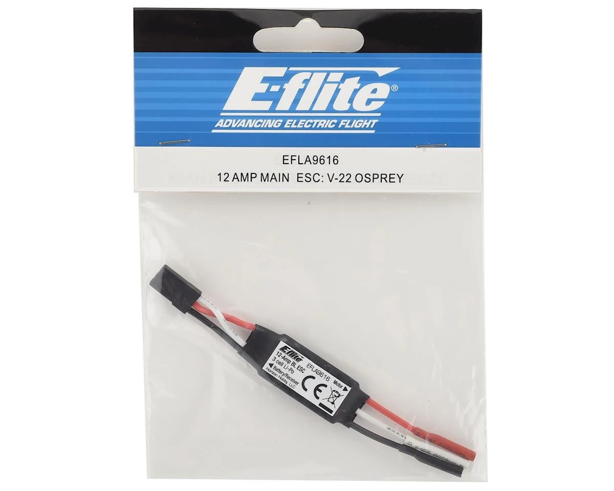 This E-Flite 12-Amp Main ESC is a replacement part for the E-Flite V-22 Osprey. This package contains one Main ESC.