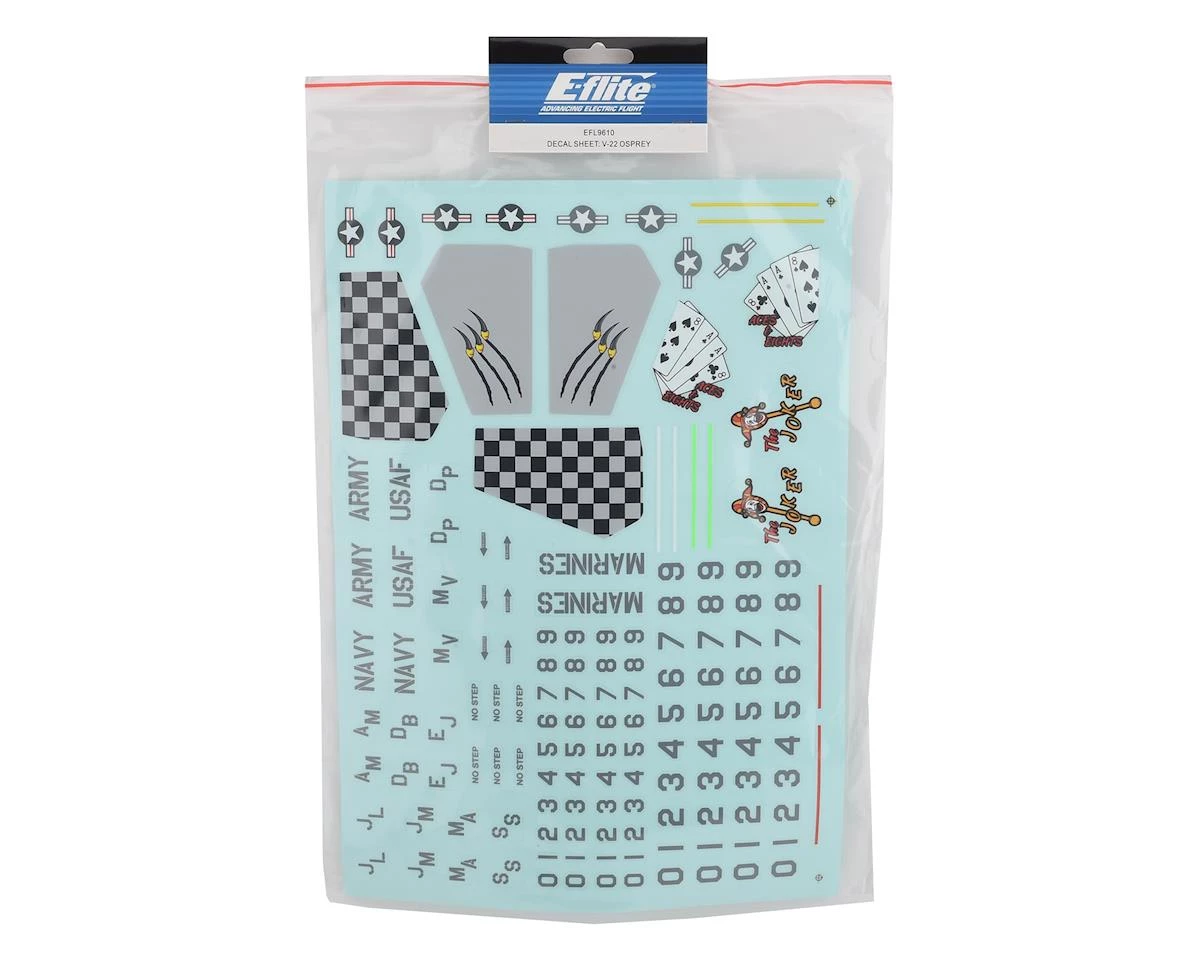 This is a optional E-Flite V-22 Osprey Decal Sheet. This part is compatible with V-22 Osprey VTOL BNF Basic 487mm (EFL9650) and the V-22 Osprey VTOL PNP 487mm (EFL9675).
